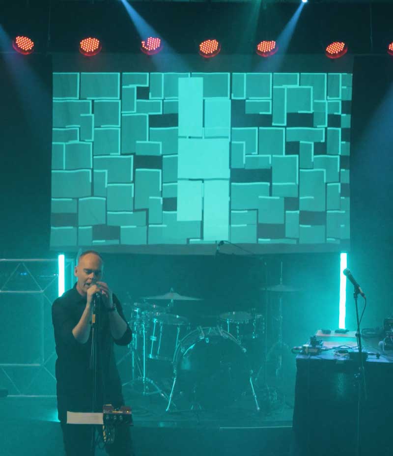The base animation is the shapes draw themselves in with an outline effect and flicker with a stroboscopic fill. It’s hypnotic, and it would work brilliantly on stage.